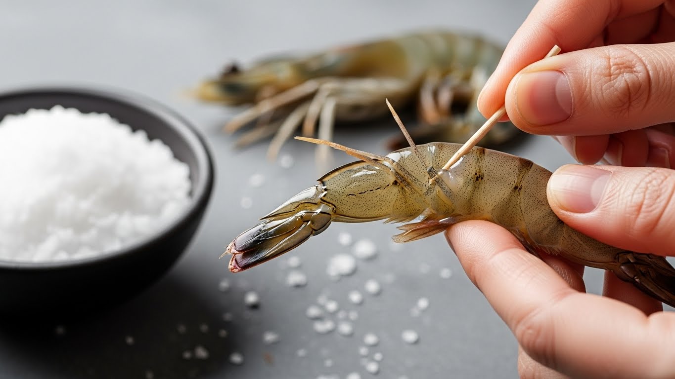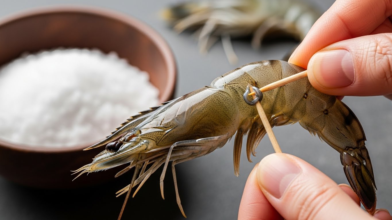 ✅ 모래 씹는 맛의 주범: 새우는 바닥의 뻘이나 플랑크톤을 먹고 삽니다. 내장 속에는 소화되다 만 먹이 찌꺼기와 고운 모래, 뻘이 들어있습니다. 제거하지 않고 요리하면 식감이 서걱거리고 쓴맛이 나며, 국물 요리나 튀김을 했을 때 터져서 요리를 지저분하게 만들 수 있습니다.