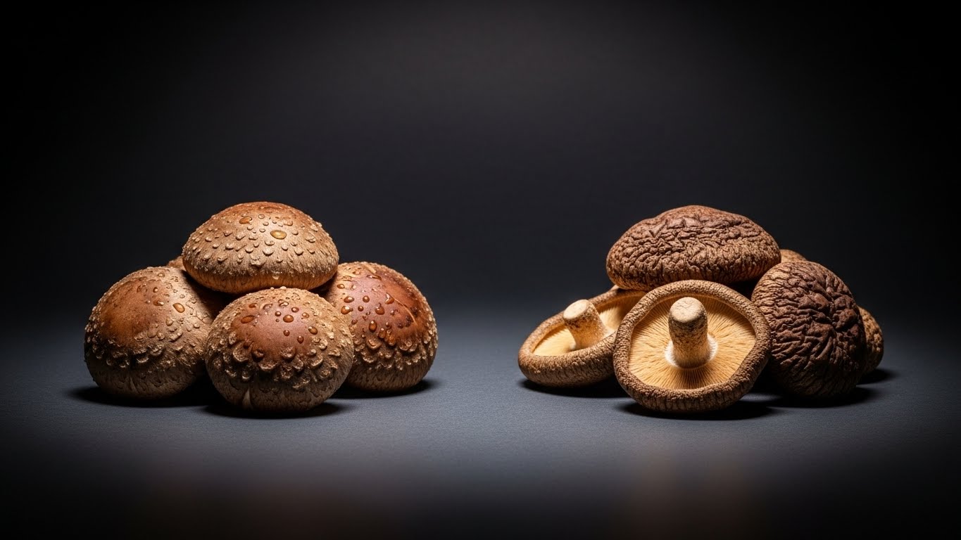 결론부터 말씀드리면, 영양의 농도와 비타민 D 함량 면에서는 말린 표고버섯이 압도적입니다. 버섯을 햇볕에 말리면 수분이 증발하면서 단백질과 미네랄 성분이 응축되고, 에르고스테롤이 비타민 D로 대량 전환되기 때문입니다. 또한 건조 과정에서 감칠맛 성분인 구아닐산이 더욱 진해져 요리의 풍미도 훨씬 깊어집니다. 다만 비타민 C 섭취와 신선하고 부드러운 식감을 즐기고 싶다면 생표고버섯을, 깊은 약성과 진한 맛을 원한다면 말린 표고버섯을 조리 목적에 맞게 선택하는 것이 가장 현명합니다.